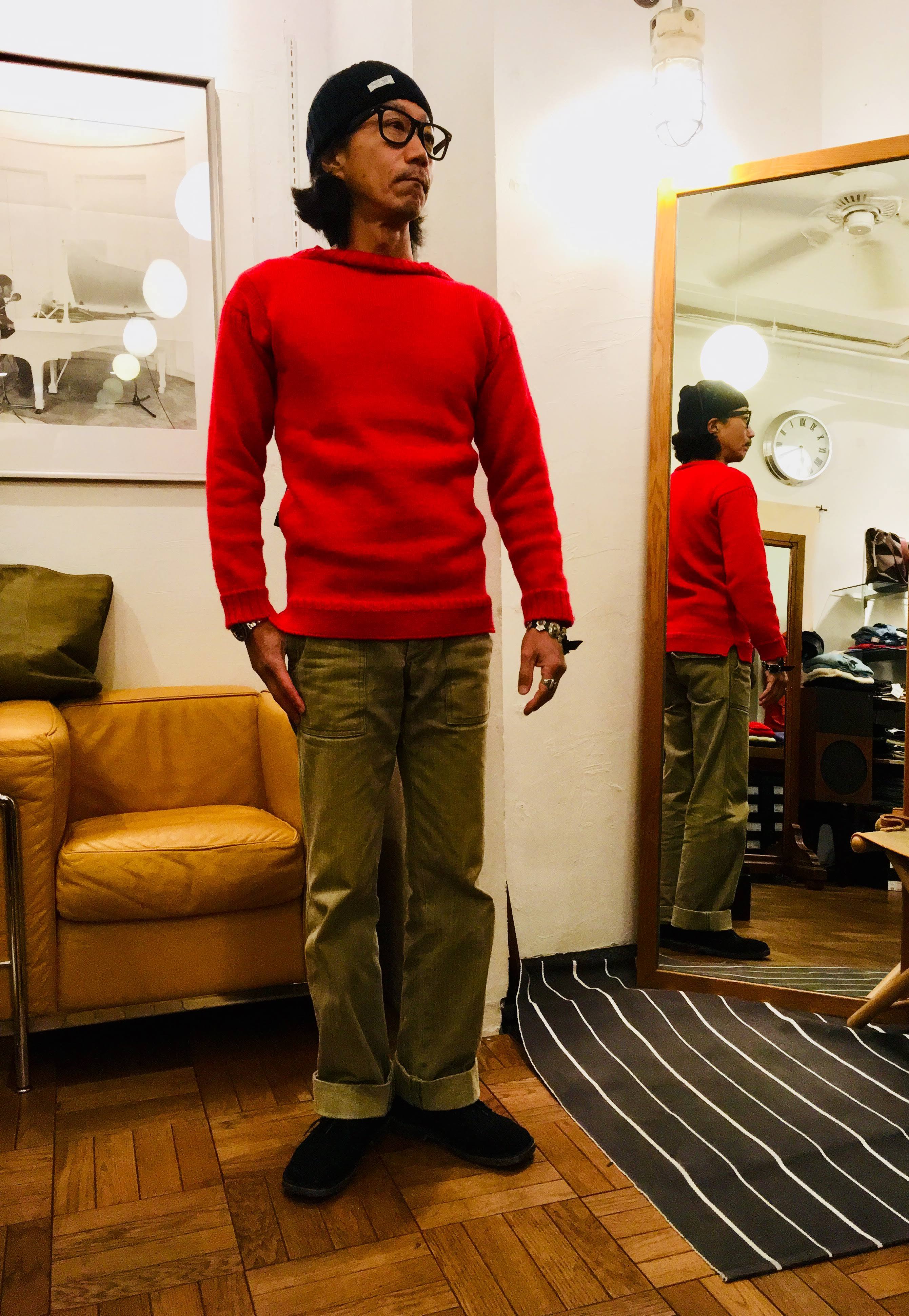 ほぼユニフォームのように毎日着るガンジーセーター。